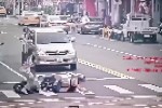 臺中市北區一中商圈附近,19日發生行人闖紅燈交通意外,1名女子違規闖道,走在斑馬線沒有注意直行機車,男騎士閃避當場摔車翻滾好幾圈,女子沒事但受驚嚇,無論號誌標示都必須禮讓行人,雖然路人違規在先,但騎士仍有肇責,警方將進一步釐清肇事原因。