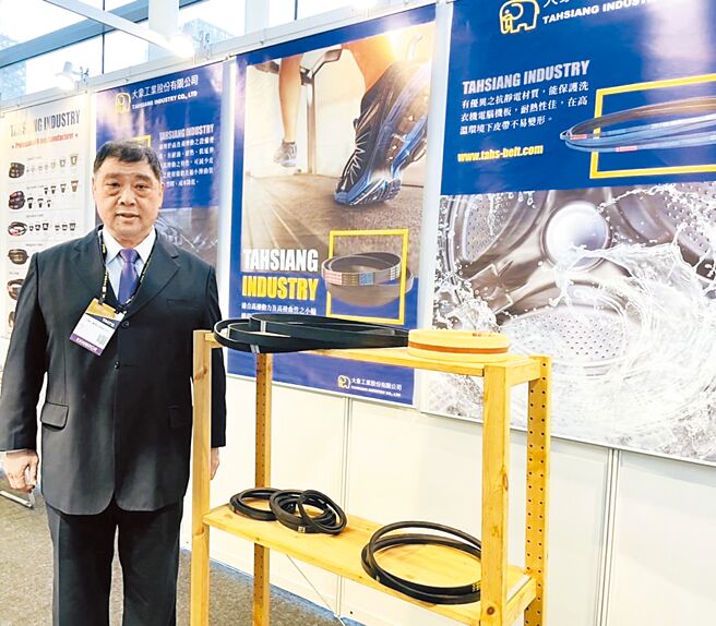 大象工業董事長張志鬆強調,ELEPHANT、MOUNTAIN橡膠傳動帶,媲美國際大牌。圖/李水蓮