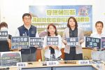 民進黨市議員何文海(左三)等於市議會中,抨擊新建焚化爐34年前環評還有效?要求重蓋焚化爐必須重作環評。(陳世宗攝)