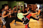 臺灣人壽組隊泳渡日月潭,總經理莊中慶(左七)與臺灣阿龍擔任泳渡大使,爲「泳」士們加油打氣。(臺灣人壽提供/黃琮淵臺北傳真)