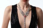 香奈兒Contraste Blanc山茶花鑽石珍珠項鍊,山茶花可當胸針,爲獨一無二的作品,8737萬4000元。(CHANEL提供)